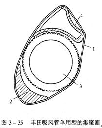 吸風(fēng)管套集聚圈型吸風(fēng)集聚機(jī)構(gòu)的另一個(gè)最重要的關(guān)鍵件就是集聚圈。集聚圈與吸風(fēng)管互相配合共同完成集聚區(qū)對(duì)纖維的集聚緊密作用。有鑒于此,如把吸風(fēng)管套集聚圈型吸風(fēng)集聚機(jī)構(gòu)簡(jiǎn)稱為吸風(fēng)管型吸風(fēng)集聚機(jī)構(gòu)或者集聚圈型吸風(fēng)集聚機(jī)構(gòu)固然簡(jiǎn)單,但不如前者形象和清楚。