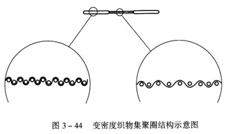 ②織造時(shí)要求經(jīng)緯紗交織均勻,這樣才能保證集聚圈形狀規(guī)則、表面光潔、孔隙分布均勻。但是,選用的長(zhǎng)絲細(xì)且光滑,在織造過程中容易發(fā)生經(jīng)紗滑移和斷頭,破壞織物外觀效果和內(nèi)在質(zhì)量。