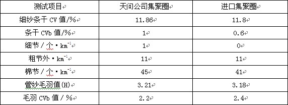 經(jīng)初步測(cè)試,天問公司的變密度集聚圈的工作區(qū)拉伸強(qiáng)度為傳動(dòng)區(qū)的50%~70%;在紡織廠進(jìn)口機(jī)器上與進(jìn)口集聚圈的對(duì)比結(jié)果也令人滿意(表3—2)。