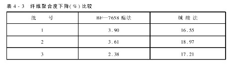 酶退漿除高效快速外,還有一個(gè)特點(diǎn)就是對(duì)纖維損傷很小。表4-3為酶法退漿與堿酸法退漿的比較。