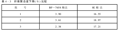 酶退漿除高效快速外,還有一個特點就是對纖維損傷很小。表4-3為酶法退漿與堿酸法退漿的比較。