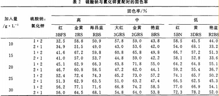 2.1硫酸鈉與氯化鉀復配對不同SEFR值活性染料固色率的影響