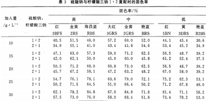2.2硫酸鈉與檸檬酸三鈉復配對不同SEFR值活性染料固色率的影響