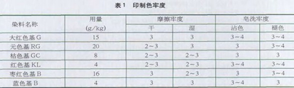 表1中的各項數據均符合國家標準。我們也可以看出,將全活性工藝改為冰活工藝后,印制的織物得色鮮亮,花型輪廓清晰,降低了成本。將涂料工藝改為冰涂工藝,不但改善了手感,而且成本也大大降低,得色鮮艷。