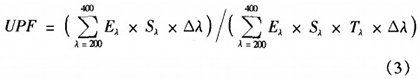 紫外線防護系數UPF與紫外線透過率互為倒數關系,計算公式為: