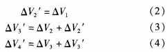 節(無前輥補償)后,前導、后導、上導、出布的調節速度依次為△V1、△V2、△V3、△V4,為了使