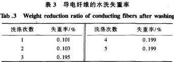 2.3導電纖維的水洗失重率