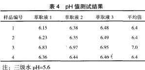 B類產品的pH值為4.0~7.5,從表中的數據看出,各個測試樣品的pH值都符合國家標準要求。