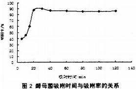 2.吸附時間對酵母菌吸附金屬鉻離子的影響