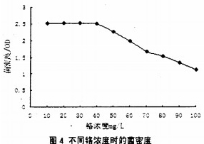 在此條件下同時測定不同鉻濃度時的菌密度變化情況,經測定后,不同鉻濃度時的菌密度如圖4所示。