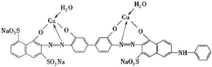 還有一些能與金屬絡合的直接染料,牢度也可以達到滿意的程度。它們也歸入上述的直接耐曬染料。如直接耐曬藍FBGL。