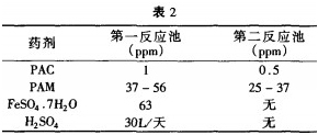 1.2.7所加藥劑:第一次絮凝所加藥劑:聚合氯化鋁(PAC),聚丙烯酰胺(PAM),硫酸亞鐵(FeSO4.7H2O),硫酸(H2S04),第二次絮凝所加藥劑:PAC,PAM
