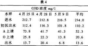 COD的測定結(jié)果如表4所示