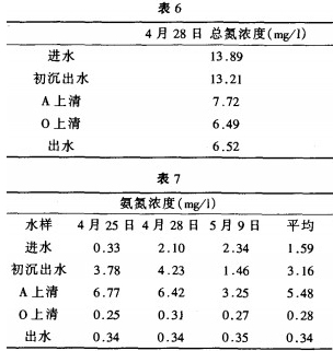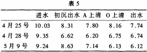 從表5可知:染整加衛(wèi)產(chǎn)生的廢水呈堿性。在廢水進(jìn)入工序前需要調(diào)節(jié)其PH以達(dá)到酸堿度的要求。由于兼性池中兼性菌的水解產(chǎn)酸作用使整體上A池水的PH降低,O池水出現(xiàn)回升現(xiàn)象,但出水PH仍達(dá)到6-9的標(biāo)準(zhǔn)。