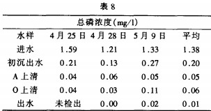 3.4.2結(jié)果及分析:由于初沉池中磷酸鹽與所加藥劑硫酸亞鐵反應(yīng)生成沉淀,且因工藝的除磷作用使出水中已經(jīng)基本不含磷,去除效率高達(dá)99%。