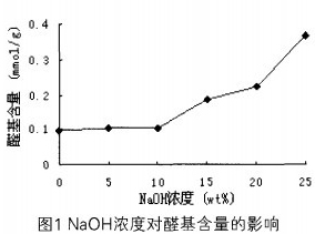 (1)在8g/LNaIO氧化條件下,與未堿預處理的氧化棉纖維相比,經NaOH濃度lOwt%以上預處理的氧化棉纖維醛基含量明顯增加。