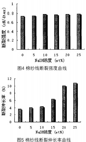 (4)經不同堿濃度預處理,蛋白氧化棉紗線的斷裂強度基本不變。而其斷裂伸長率隨著堿處理濃度增加而增加,并在堿濃度為lOwt%增加明顯。