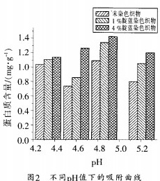 2.2 pH值對織物上蛋白吸附量的影響