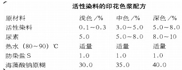 目前在印花市場上,色漿常分為染料色漿和顏料色漿兩大類型。但用于棉紡織品色漿,通常為活性染料、不溶性偶氮染料(如納夫妥染料)、還原染料、可溶性還原染料、硫化染料和直接染料。它是由染料、糊料和化學助劑組成。而用于棉紡織品顏料色漿,通常由有機顏料或無機顏料,加一定比例的甘油、乳化劑、水混合后經研磨而成(有機顏,q-,如偶氮顏料的黃、深藍、紅、醬;還原顏料如青蓮、金黃;酞菁顏料如艷藍、綠;金屬絡合型染料。而白色涂料中的鈦白粉(TiO2,)和黑色(碳黑)涂料則是無機顏料)。