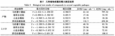 以2,4一D為對照,測定生物活性,結果見表5。