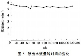 圖5給出了進(jìn)水染料濃度為50mg/L時(shí),膜出水流量隨時(shí)間的變化。