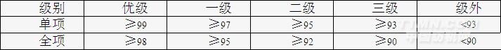 6、單項操作:①包卷方法:采用竹纖包卷上抽法。基本要點:撕條頭、條尾時纖維要平直、稀薄、均勻松散、搭頭長度要適當,竹纖長度粗細要合適,包頭不要過緊,接頭質量好,不粗、不細、不脫頭;②機前回捻接頭:基本要點,拉筆尖纖維平直,撕須條纖維要順直,搭頭時筆尖不要碰羅拉,搭頭長度適宜,接頭光潔,不粗不細,順理頭時不加捻,開車后不斷頭;③分段、倒桶、上條;全項操作:看臺面一臺為50分鐘,巡回路線:一臺為“0”型,巡回時間:每個巡回掌握在10分鐘以內,每超過30秒扣0.2分,最多扣1分,工作量標準100個,每±1個工作量±0.01分,此項加分最多加1分。評級標準: