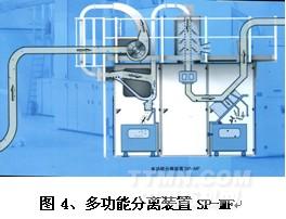 4、新式短流程開請(qǐng)棉機(jī)組中的第二個(gè)裝備是多功能分離裝置SP-MF,可將危險(xiǎn)的異物從原料流中分離出去,包括金屬、重物、火源及帶火的物質(zhì)等,另外還有清除灰塵、自動(dòng)滅火、原料輸送及落棉從新喂入等功能。(見圖4)這個(gè)機(jī)器代替了金屬探測(cè)器、重物分離器、火警探測(cè)及滅火器等功能。多功能分離裝置 SP-MF,除了要完成上述任務(wù)外,還擔(dān)負(fù)著原棉的開松任務(wù),開松的作用是柔和的,相對(duì)于整個(gè)開清棉流程又體現(xiàn)了開松的漸增性的原則,纖維損傷少,棉結(jié)產(chǎn)生少。