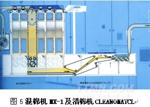5、第三個(gè)機(jī)器是混棉機(jī)MX-1及清棉機(jī)CLEANOMATCL-C3(三剌輥系統(tǒng))CLEANOMATCL-C4(四剌輥系統(tǒng))聯(lián)合機(jī)組(見圖5)