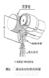 ⑸紗線的結頭方法:1紡紗過程中纖維從牽伸裝置進入噴嘴內部,接頭動作自動即完成,這種方法與筒子紗接頭一樣也叫空氣捻接接頭法。見圖2