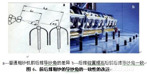4、前后排粗紗的導(dǎo)紗角的一致性:(見圖6)