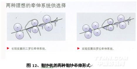 3、高科技粗紗機采用四羅拉雙短皮圈三區牽伸型式,是現代粗紗機的第三大特征。