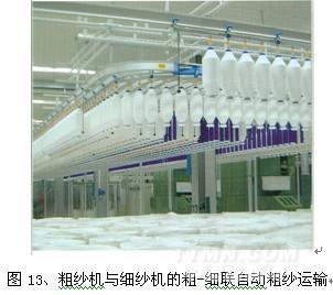 美國(guó)等發(fā)達(dá)國(guó)家對(duì)環(huán)錠紡紗系統(tǒng)進(jìn)行全自動(dòng)化的改造,包括對(duì)粗紗全自動(dòng)落紗、自動(dòng)運(yùn)輸及粗細(xì)聯(lián)自動(dòng)化技術(shù)的實(shí)施。實(shí)現(xiàn)粗紗工程的自動(dòng)化對(duì)于高工資的發(fā)達(dá)國(guó)家尤為重要。