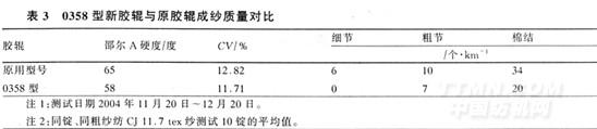 4.2 0358型膠輥彈性好、吸振能力強,能有效地握持須條并能使鉗口動態(tài)握持力保持相對穩(wěn)定;因此,可改善成紗條干、減少紗疵、提高成紗質(zhì)量,但膠輥硬度低、易磨損、使用壽命短。
