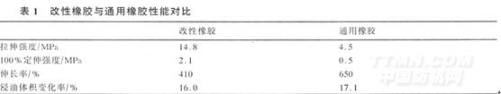 根據不處理膠輥耐磨性、耐油性的要求,對比原先普通膠輥所選用橡膠的特性,我們選用了中高丙烯腈含量的改性橡膠。由于此橡膠通過改性,提高了耐油性,并具有高強度。具體參數見表1。