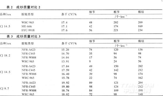 由以上數據可以說明國產表面不處理膠輥的紡紗水平已十分接近進口膠輥,國產表面不處理膠輥的紡紗質量與進口膠輥基本上處于同一水平;有些還存在一定的差距,主要是各個型號表面不處理膠輥生產廠家的膠輥性能有差異。