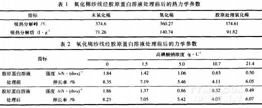 (3)氧化棉纖維經(jīng)膠原蛋白溶液處理后熱穩(wěn)定性提高。
