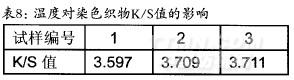 從表8中數據可以看出,隨著溫度的升高,染色后織物的K/S值逐漸增大,但從80~85,K/S值增加不明顯,但由于溫度對聚乳酸纖維的機械性能影響較大,溫度越高,聚乳酸纖維越易分解,所以我們選擇處理溫度為80℃。