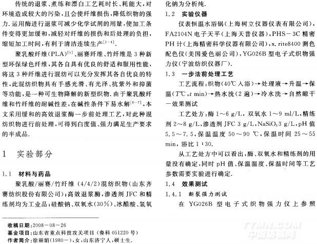 關(guān)鍵詞:聚乳酸纖維;混紡織物;前處理;一步法;清潔生產(chǎn)