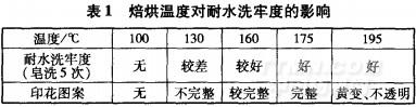 2.1焙烘溫度對印花效果的影響