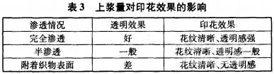 2.3上漿量對印花效果的影響