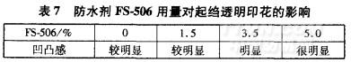 2.7防水劑FS-506對(duì)起縐透明印花的影響
