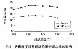 2.3.2焙烘溫度對(duì)整理滌綸織物親水性的影響