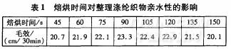2.3.3焙烘時(shí)間對(duì)整理滌綸織物親水性的影響