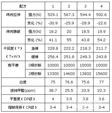 主要試劑:低甲醛樹脂NLD、無甲醛樹脂WSD、催化劑CS-900、柔軟劑DT-520新、纖維保護劑DT-P、增強劑DT-PN、增白劑MST(液),以上均為石家莊市聯(lián)邦科特化工產品。