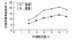 固定絲素用量為40g/L改變整理液中檸檬酸的用量,按1.2節整理工藝對真絲織物進行整理,其防皺效果見圖2。
