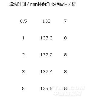表4 焙烘時間對拒水拒油性能的影響