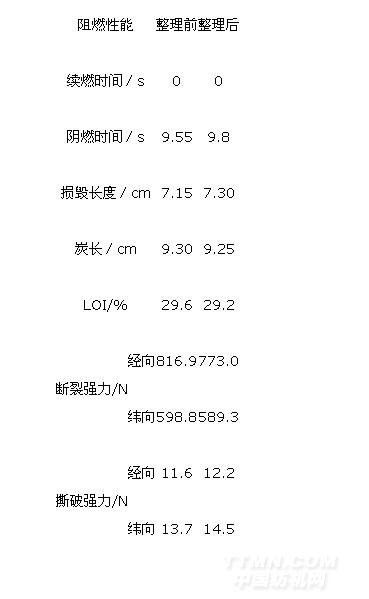 織物經最優工藝整理后阻燃性能和強力見表5。
