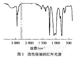 由圖1可知,改性硅油中Si一0一Si結構對應的特征吸收峰為1022.34cm-1,1261.14cm-1處為si~CH3與Si—cH2中c—H的彎曲振動吸收峰,801.52om處為si—CH,結構中Si—c的彎曲振動吸收峰,1093.41cm-1是c—O—C結構的特征吸收峰,1410.81、2963.05cm-1是一cH,、一cH中飽和C—H的彎曲振動吸收峰,3362.5cm-1處為羥基,仲氨基中O—H、N—H的彎曲振動吸收峰.