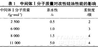 2.2.1端含氫硅油(中間體I)分子質量對改性硅油性能的影響