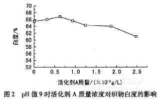 2.5.1pH值9時活化劑A用量對織物白度的影響